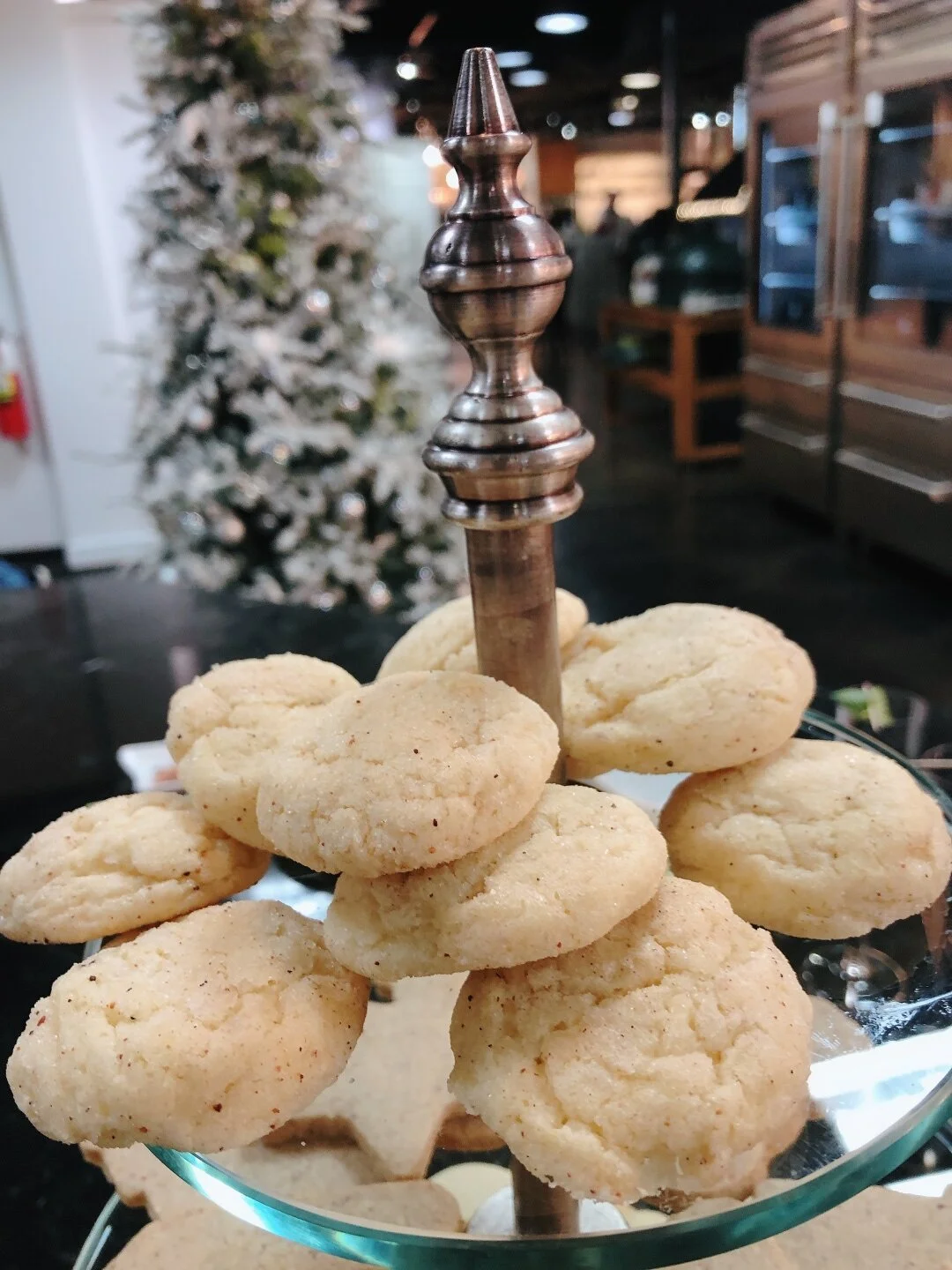 Today they had an open house at Capital Distributing in Dallas where people could come in and see the Signature Kitchen Suite Appliance line in person, and we had holiday goodies and ideas that they could sample as they toured their beautiful showroom. I tried out some new recipes using the sous vide component of their ranges and did some cookies that cook perfectly in their convection ovens. These Noggerdoodle cookies were a huge hit, and some people asked for the recipe so I’m sharing it here. Happy holidays and may your days be filled with great food, family, and new memories.