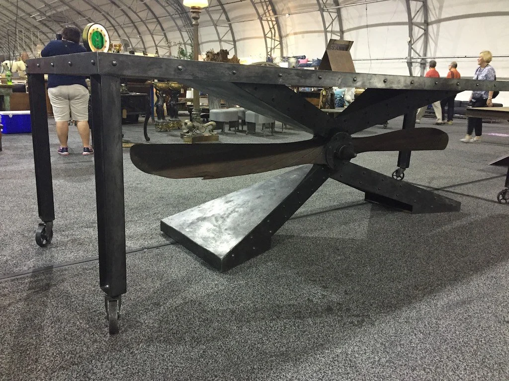 The thrill of the find - when you go someplace that you usually wouldn't go and come across something as spectacular as this dining table that has a propeller as the base.