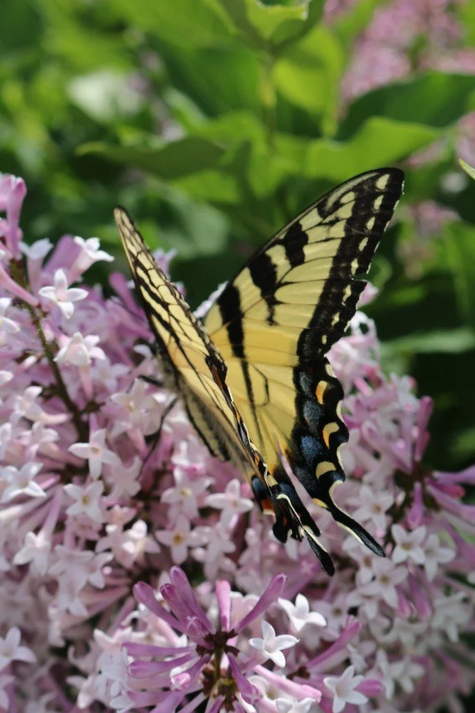 This week I was in Canandaigua, NY working at The Hammocks at Canandaigua and was excited to see that the lilacs were blooming. These are some of my favorite flowers and you have to enjoy them for the short times they are in bloom, then wait for next year. I was breathing in their intoxicating fragrance and taking a few photos when this stunning butterfly decided to join me and feast on their nectar. He truly floated over these delicate blooms and allowed me to get a few shots then went on to the next.