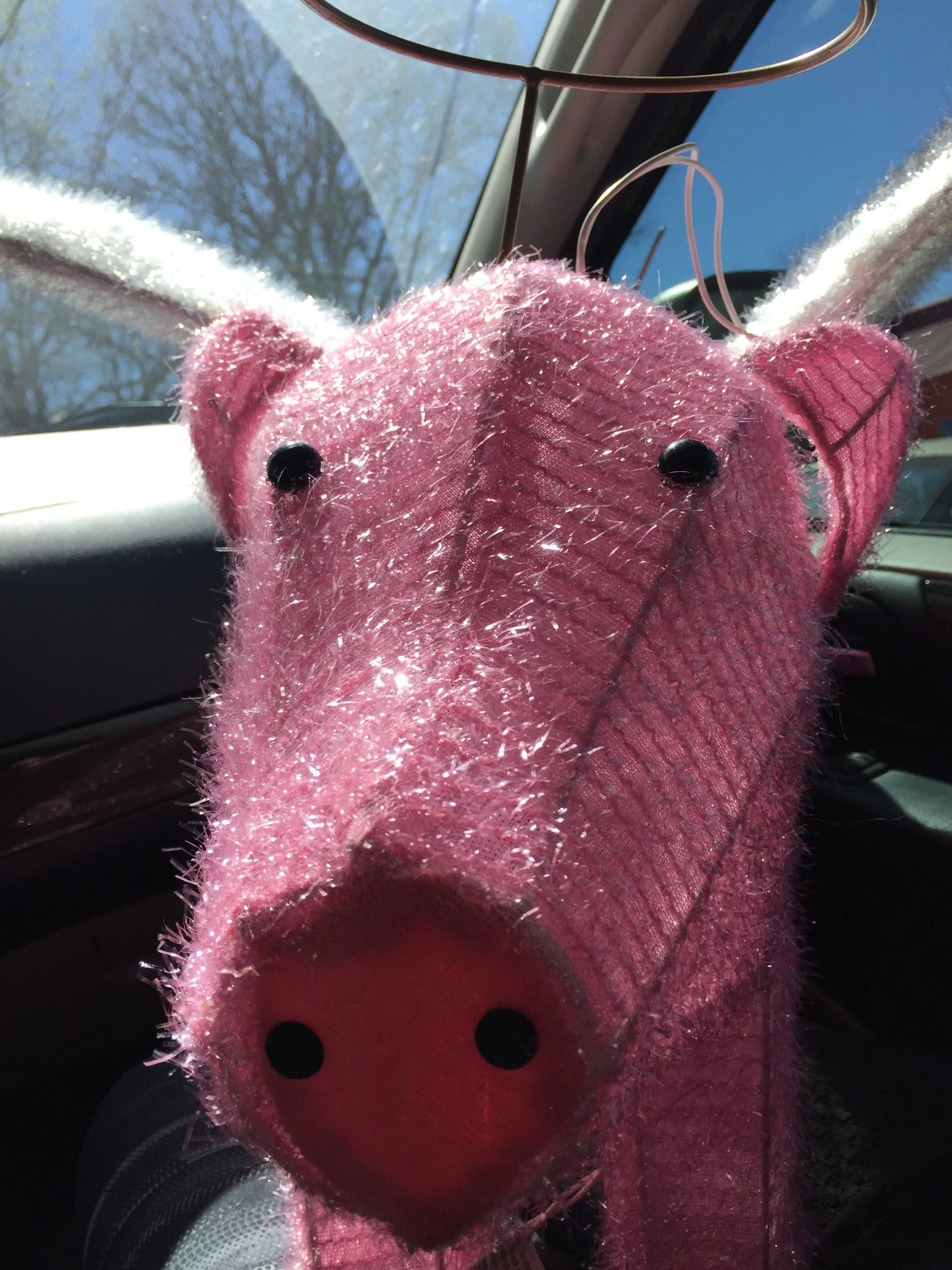This little happy pig is one of the things I've been saving and collecting since I've owned a pig (or two or three!) of my own, and she was the first treasure to find a new home in my space - I thought it would be easy to tell people to just look for the flying pig to find us.