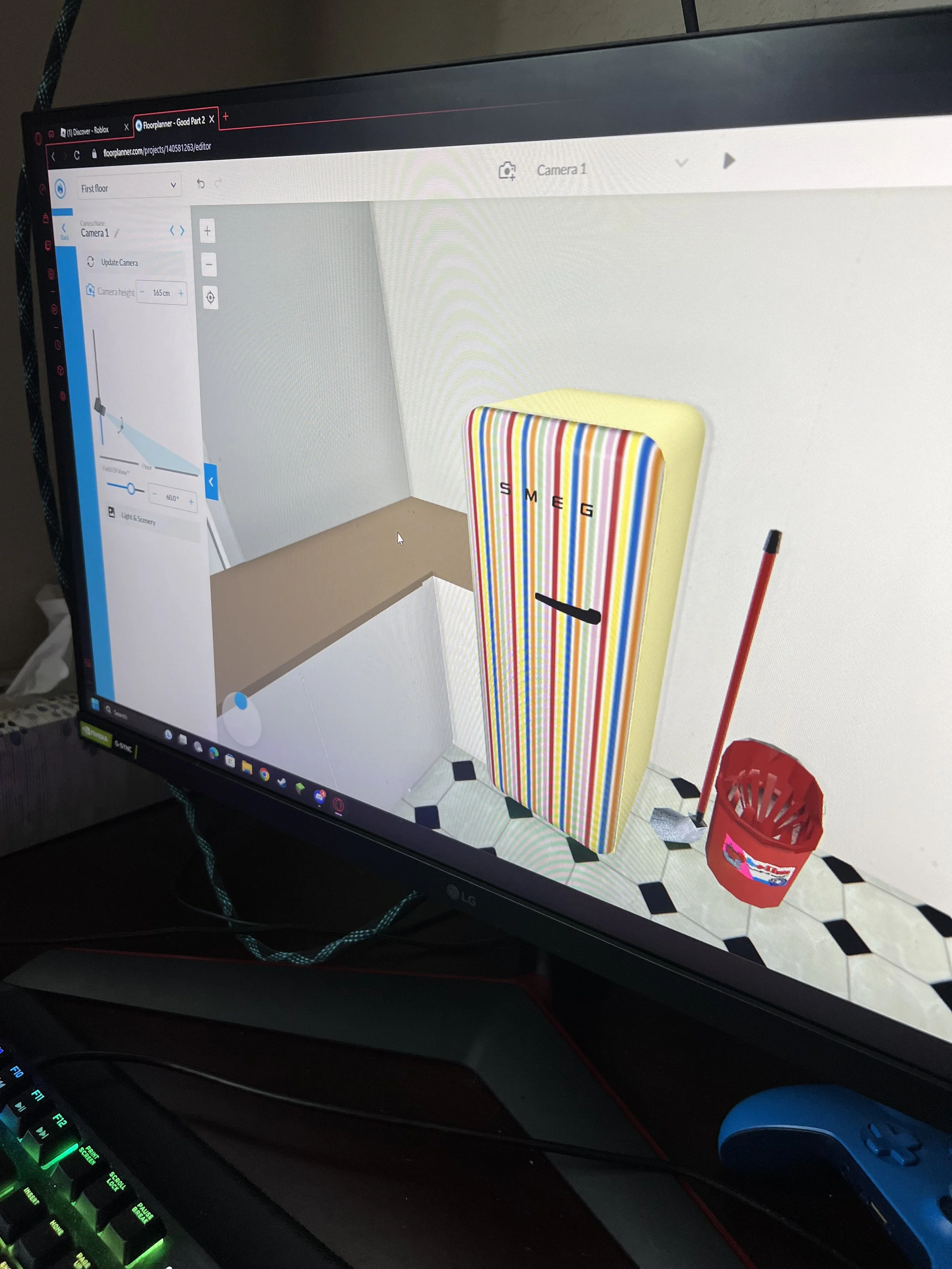 Of course, I looked at it and immediately wanted to move walls and redesign the entire home, but the exercise was different. I am unsure if the version available for free online is the same, but the version the kids use is from the UK. We looked at what the teacher designed and tried to search for the same items. An oven was a "cooker," and he had a mop next to the cooker, but we stayed faithful to the task. But what excited me was when we got to some of the other appliances, and I immediately realized they were from Smeg.